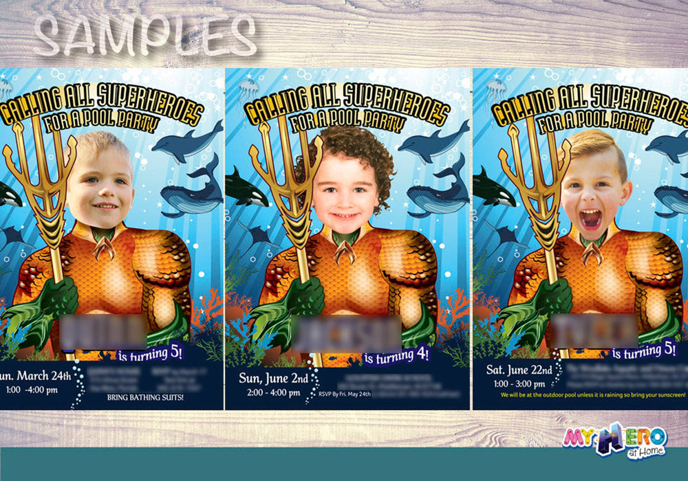Joint Aquaman Birthday Invitation with kids as Aquaman, Siblings Party Invitation themed Aquaman. 196IN
