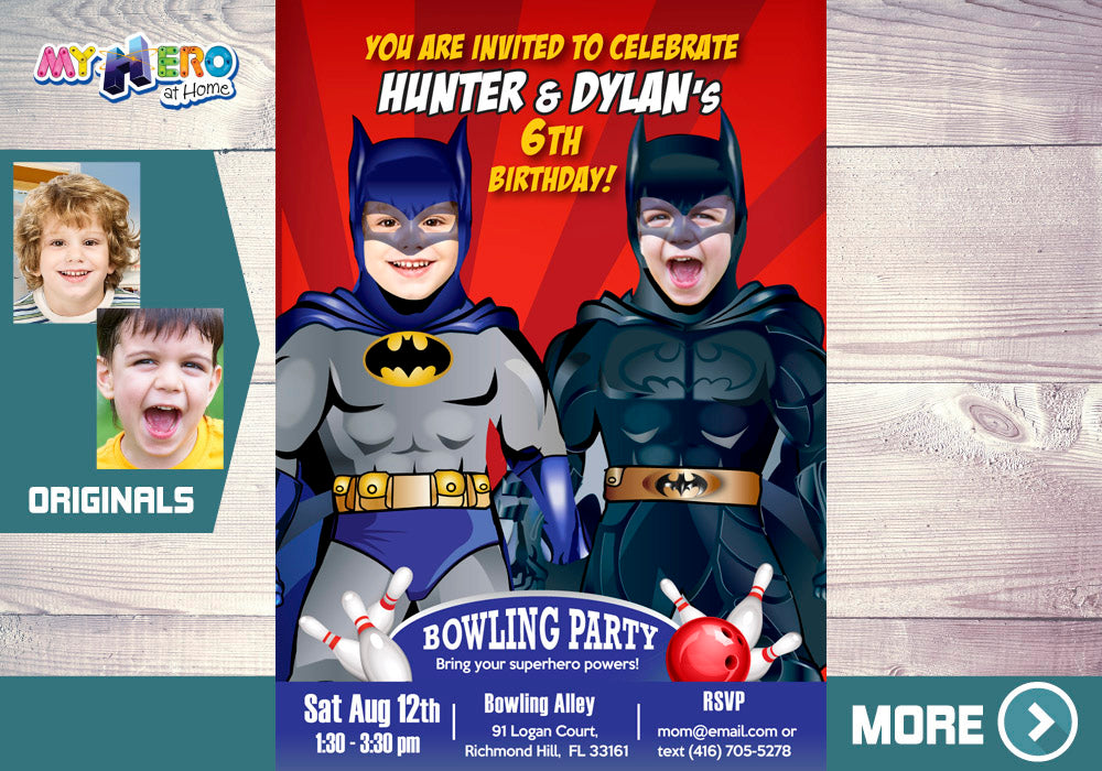 Custom Joint batman birthday invitation, Joint Batman photos invitation, Joint Batman digital invitation, Batman Bowling theme party, Joint Batman Bowling party, Batman Bowling Party, Batman Theme party, Batman Siblings Bowling Party, Siblings batman party.