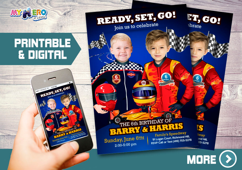 Car Party Ideas, Joint Race Car party Invitation for 2 kids, Formula One Siblings party invite, Super Formula Joint birthday template, Le Mans birthday themed