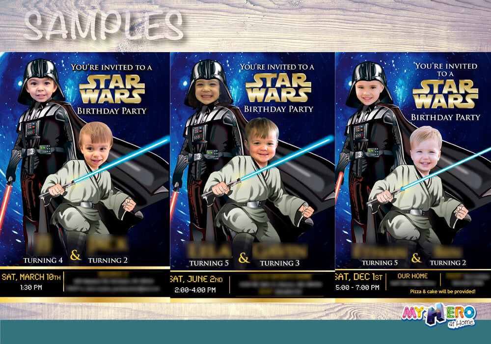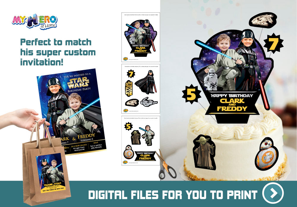 Joint Star Wars Jedi and Darth Vader Cake topper with your photos, Star Wars siblings printable cake decor. 586