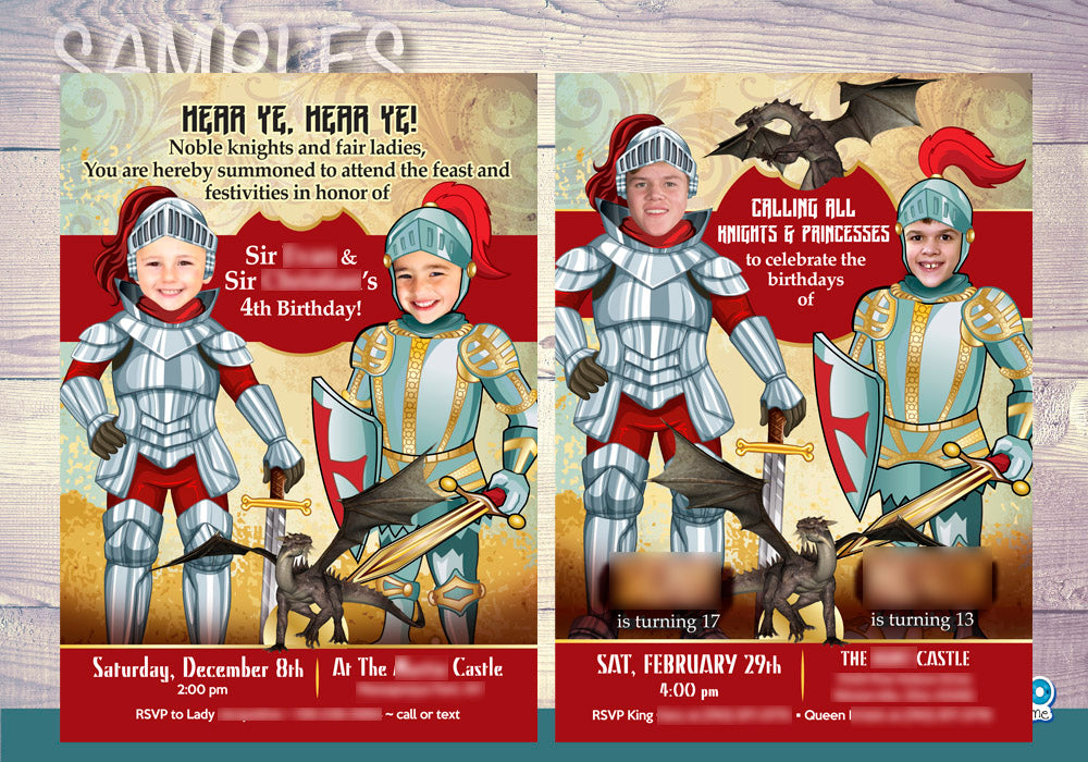 Joint Medieval Knight Photos Invitation, Custom Knights siblings invitation, Medieval Knights theme party, Joint Medieval Invitation, Joint Knights Invitation, Dragons Birthday invitation, Dragons invitation with photo