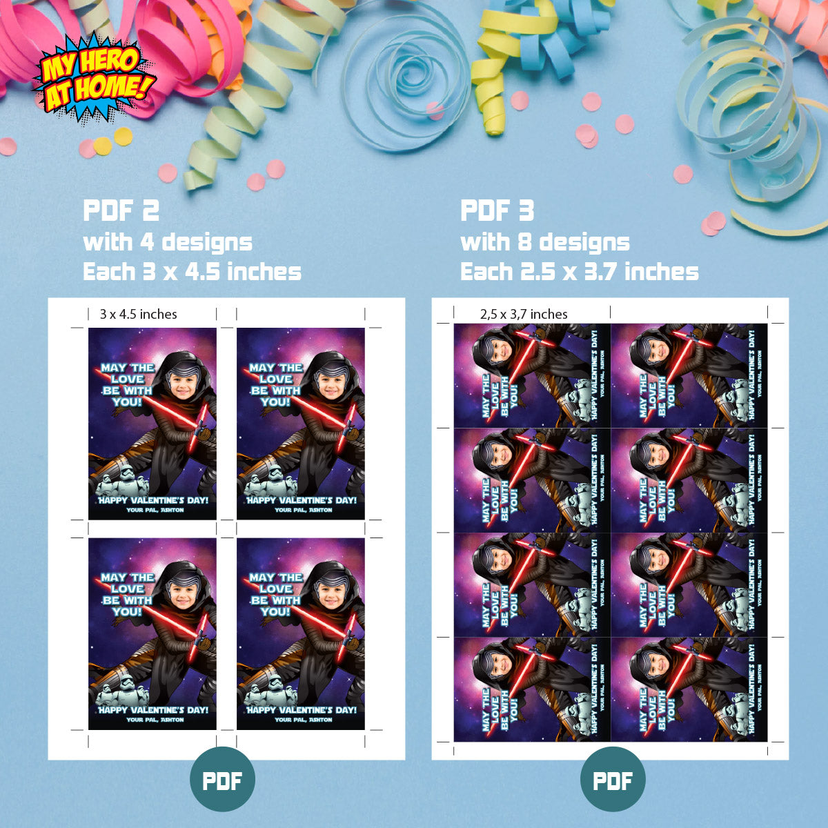 - 3 PDFs with different sizes (easy to print at home, see sizes in images)