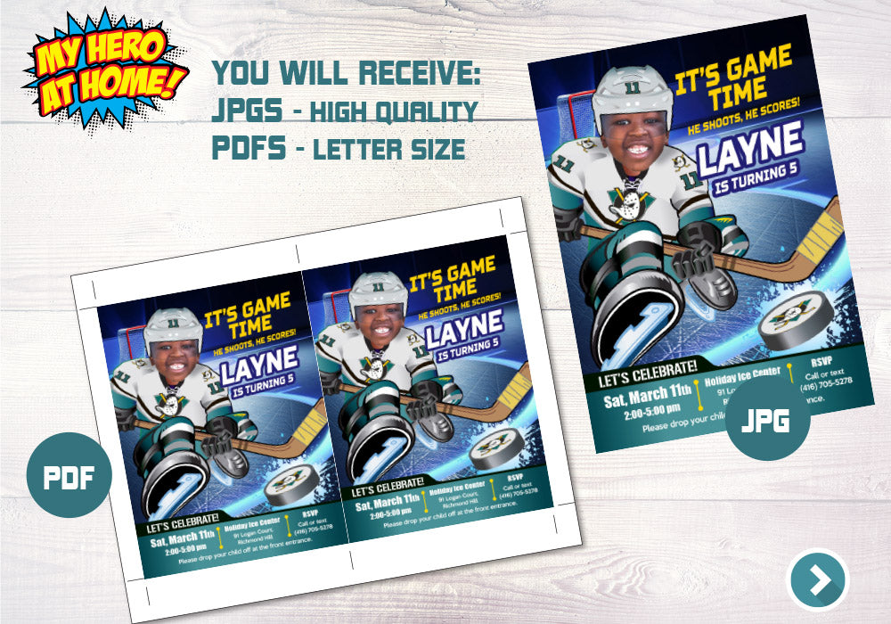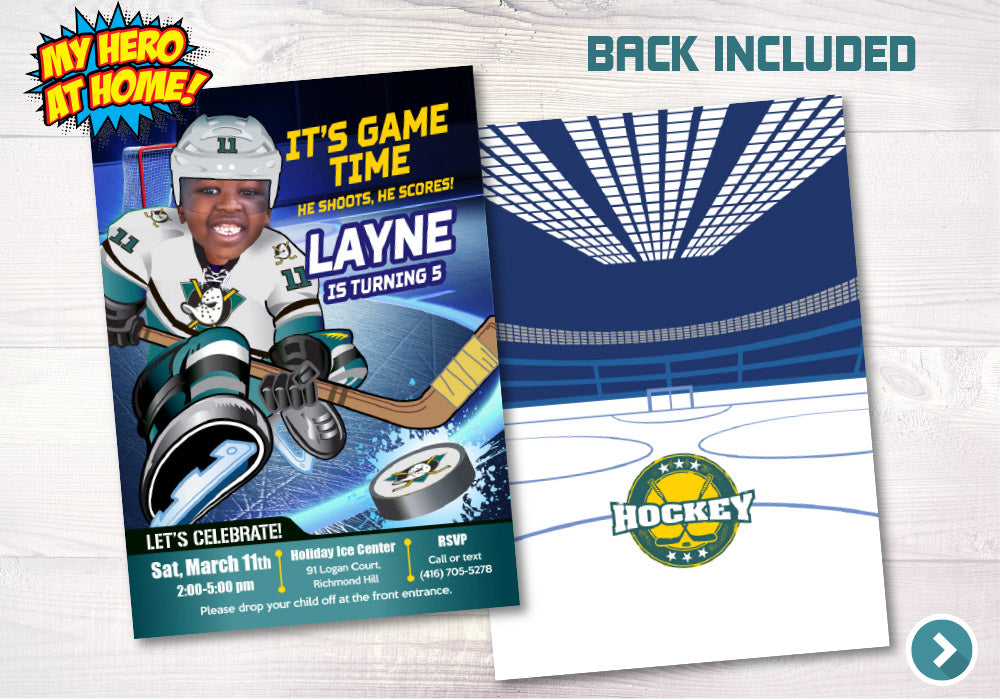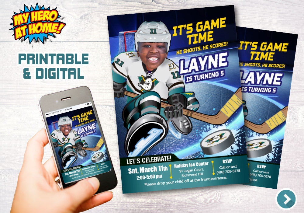 Mighty Ducks party templates, Kids Mighty Ducks birthday, Mighty Ducks birthday invite with photo, Mighty Ducks Mites digital invite, Hockey Mini Mites Invitation with photo, Custom Hockey photo invitation, Mighty Ducks theme kids party