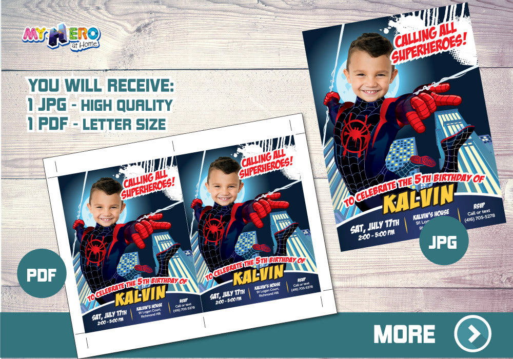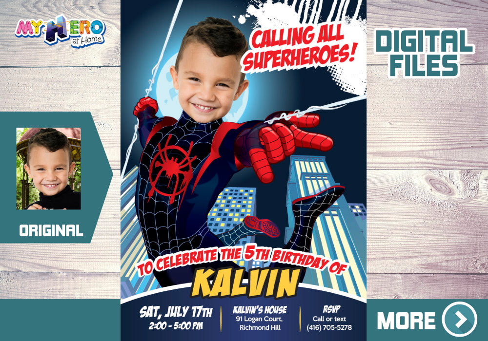Custom Miles Morales Invitation. Miles Morales photo invitation. Miles Morales Party Decor. Miles Morales Birthday. Miles Morales Decoration. Miles Morales Cake topper. Miles Morales Party Ideas.