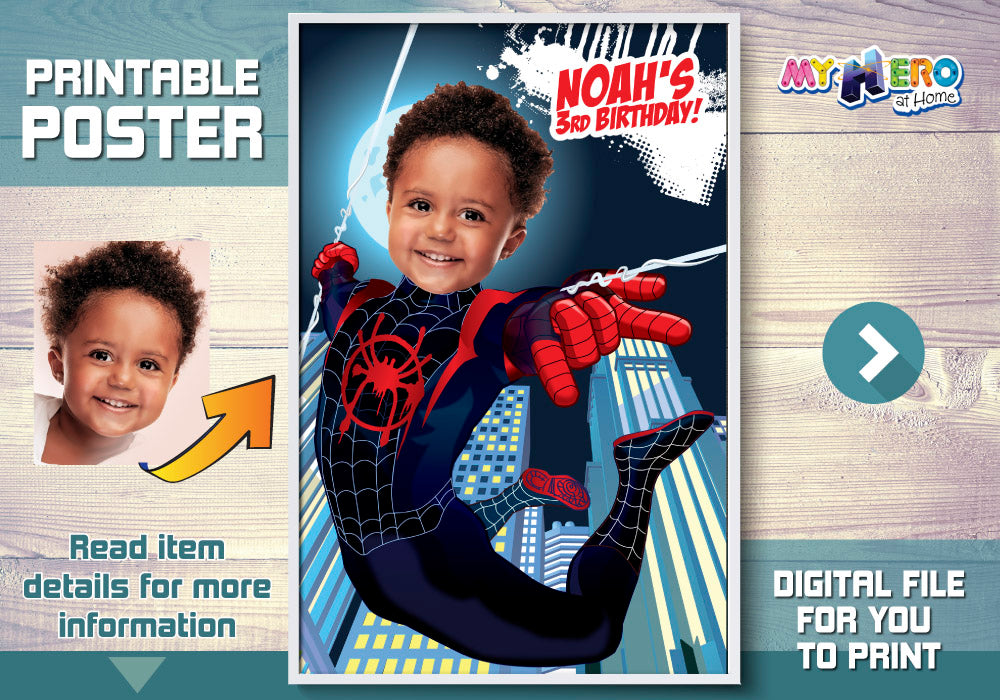 Miles Morales Poster with your kid as the star, Custom Miles Morales printable gift. 428