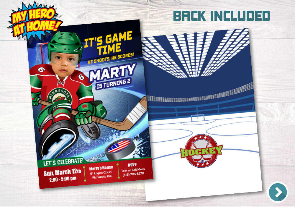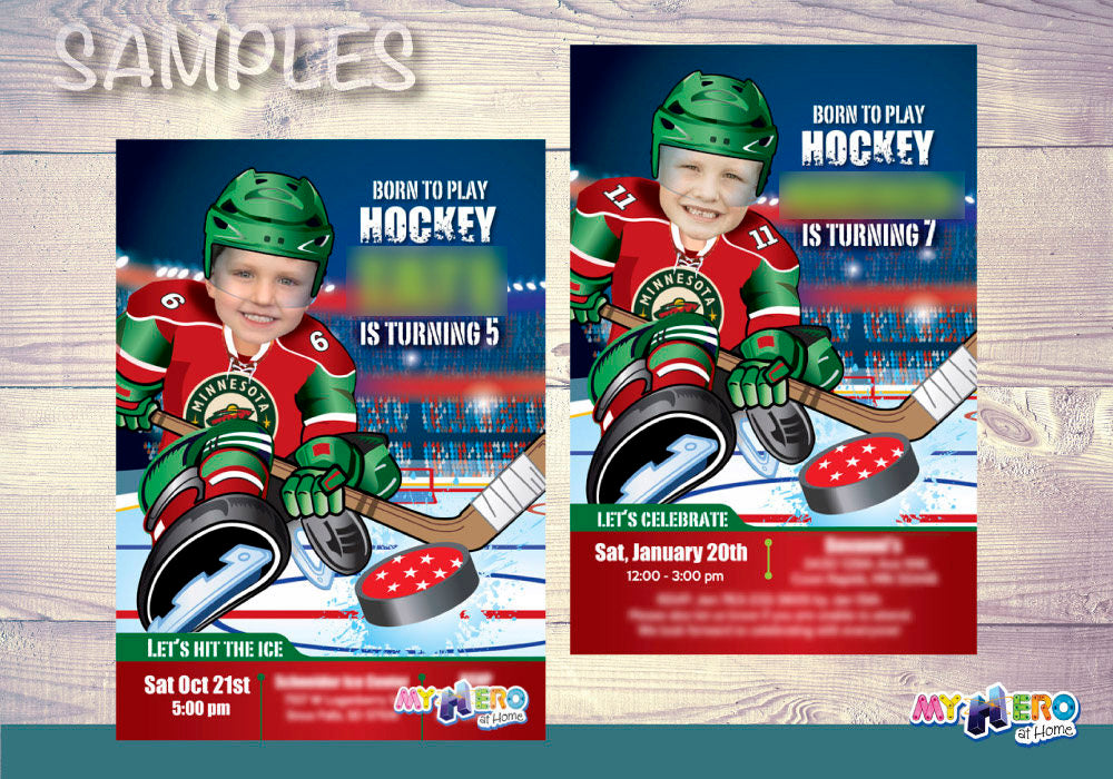 Minnesota Wild Birthday party Invitation with photo, Minnesota Wild Mini Mites Birthday templates. 319C