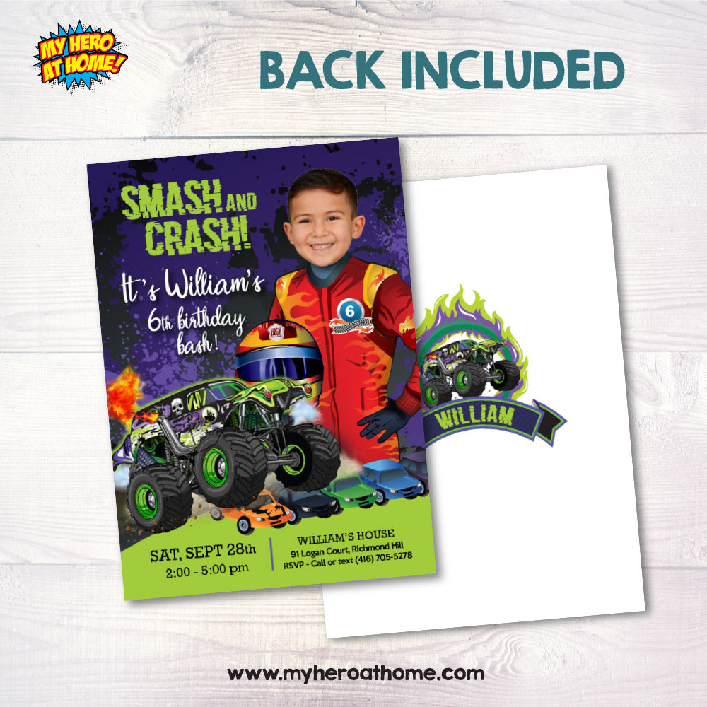Personalized with photo Monster Truck Invitation, Custom Monster Truck birthday Invitation, Monster Truck Gravedigger themed birthday, Monster Bash flyer invitation, Monster Bash online, Monster Truck party bash template invite