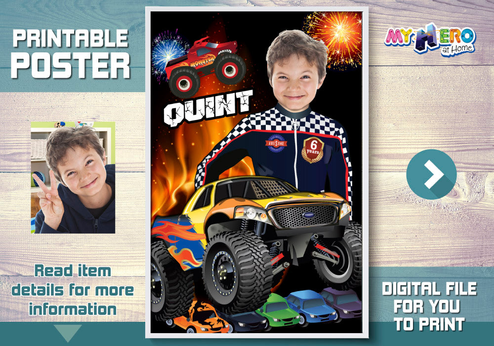 Monster Truck Photo Poster, Monster Jam Poster with photo, Custom Monster Truck Printable Gifts. 452