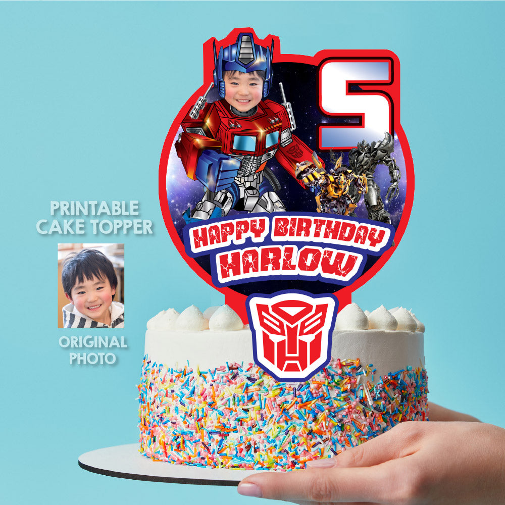 Optimus Prime Cake topper with kid as his favorite Autobot, Printable Transformers cake decor with photo. 577