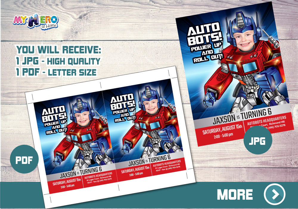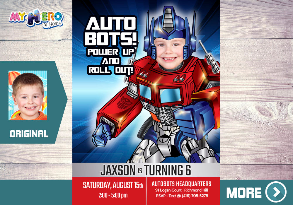 Custom Optimus Prime birthday Invitation, Optimus Prime photo invitation, Transformers photo Invitation, Optimus Prime theme party.