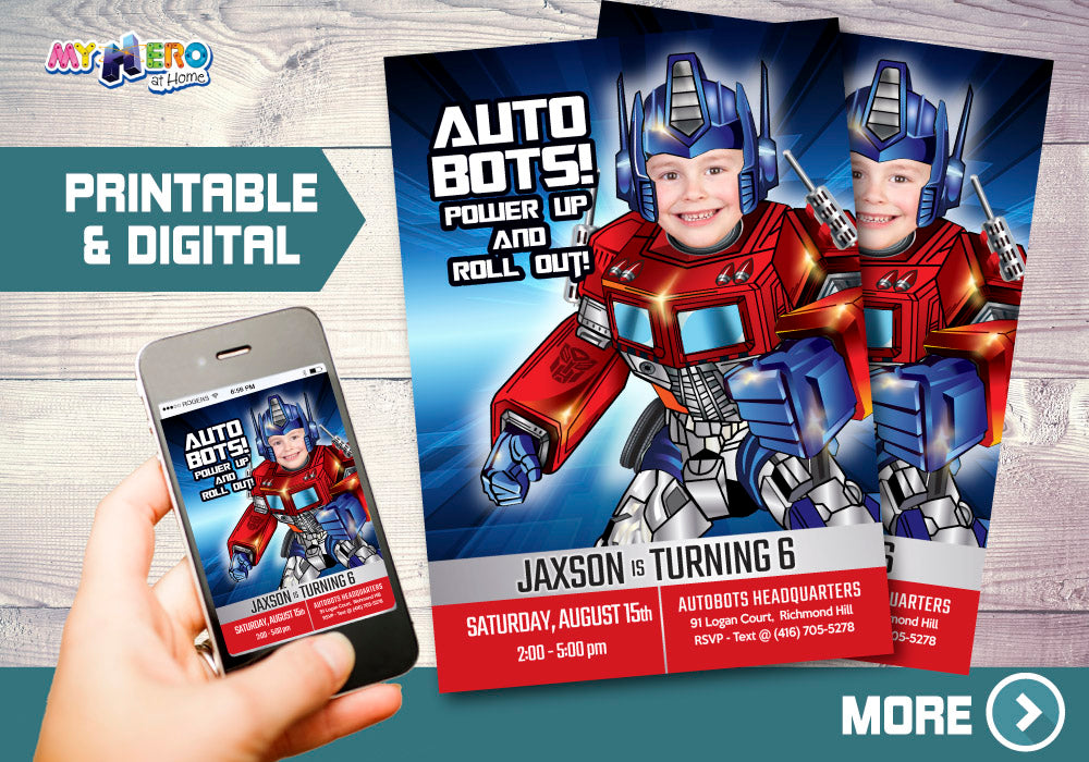 Optimus Prime photo Invitation, Transformers Theme Party, Optimus Prime Digital Invitation. 455