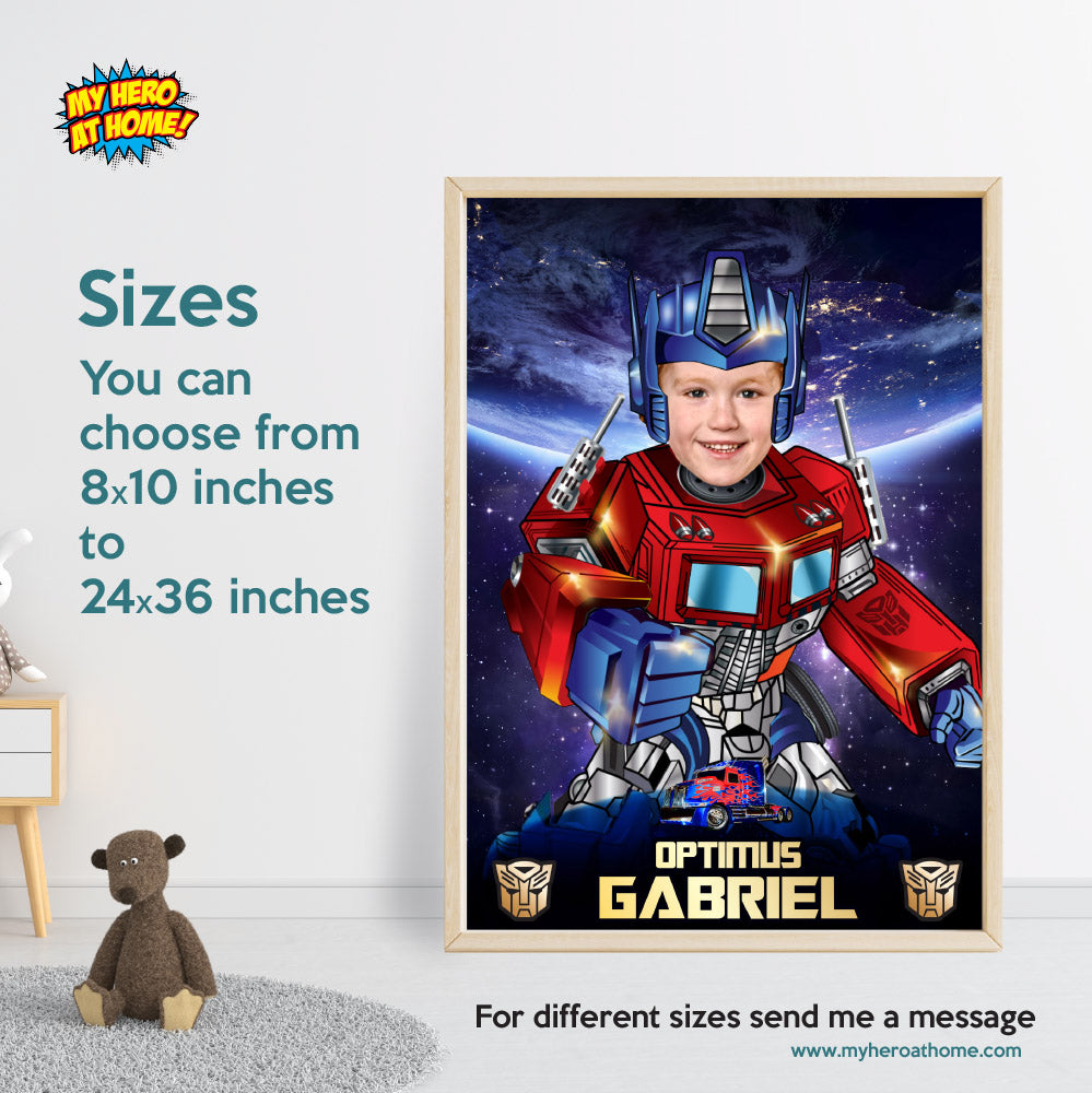 Custom Optimus Prime Poster, Optimus Prime poster with photo, Optimus Prime Photo decoration, Optimus Prime Decor, Optimus Prime Room Decor, Custom Optimus Prime Gifts, Optimus Prime Party Decor, Optimus Prime Wall, Optimus Prime photo poster, Personalized Transformers poster, Transformers party decor.