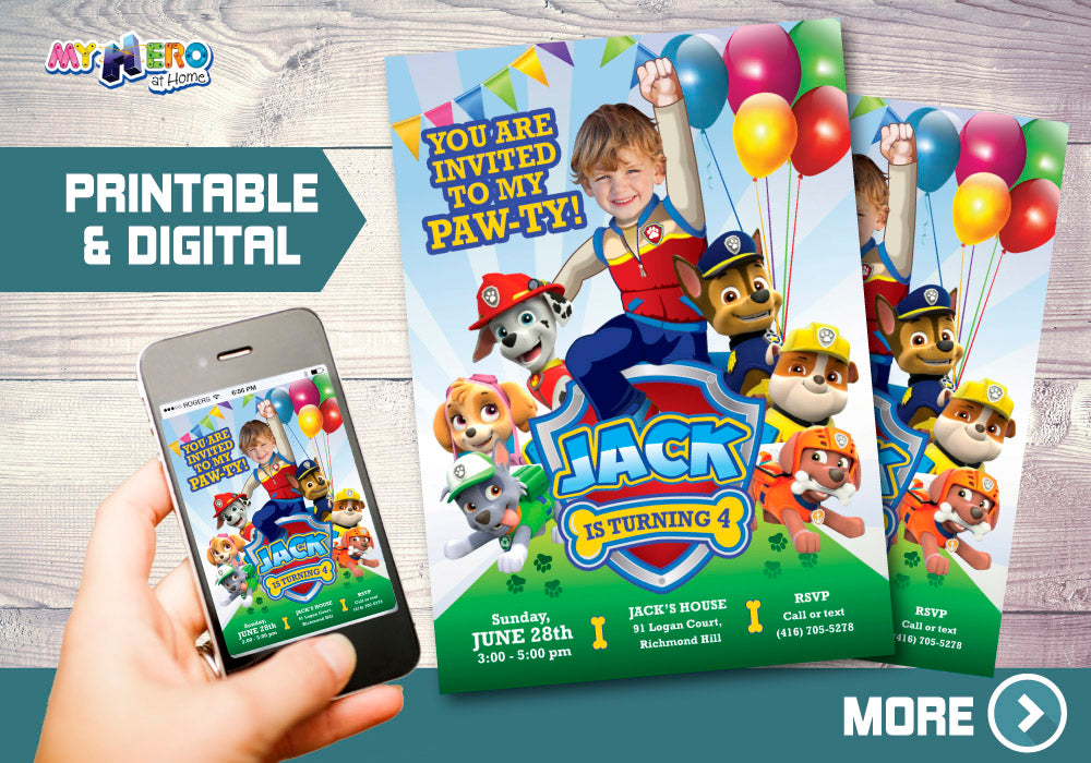 Paw Patrol Pawty Invitation, Paw Patrol Ryder Party invitation, Paw Patrol Digital Invite. 377