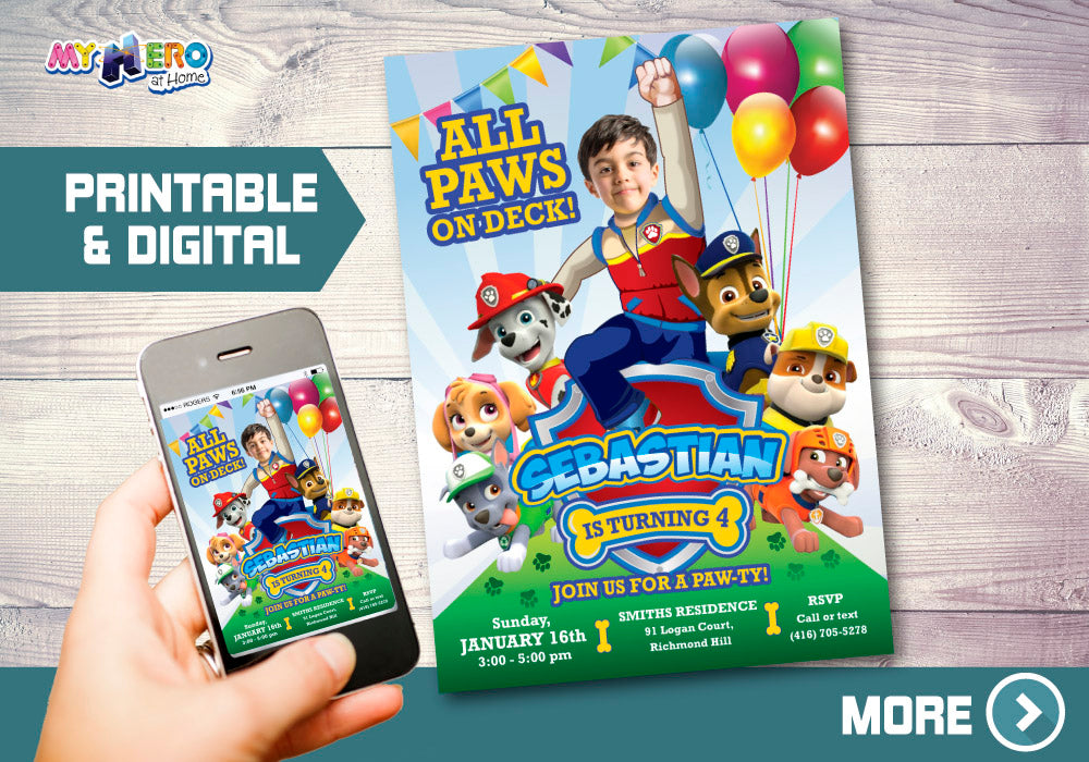 Turn your little boy in Ryder for his unique Paw Patrol Party Invitation, Paw Patrol theme Party, Paw Patrol Birthday, Paw Patrol Digital Invitation.