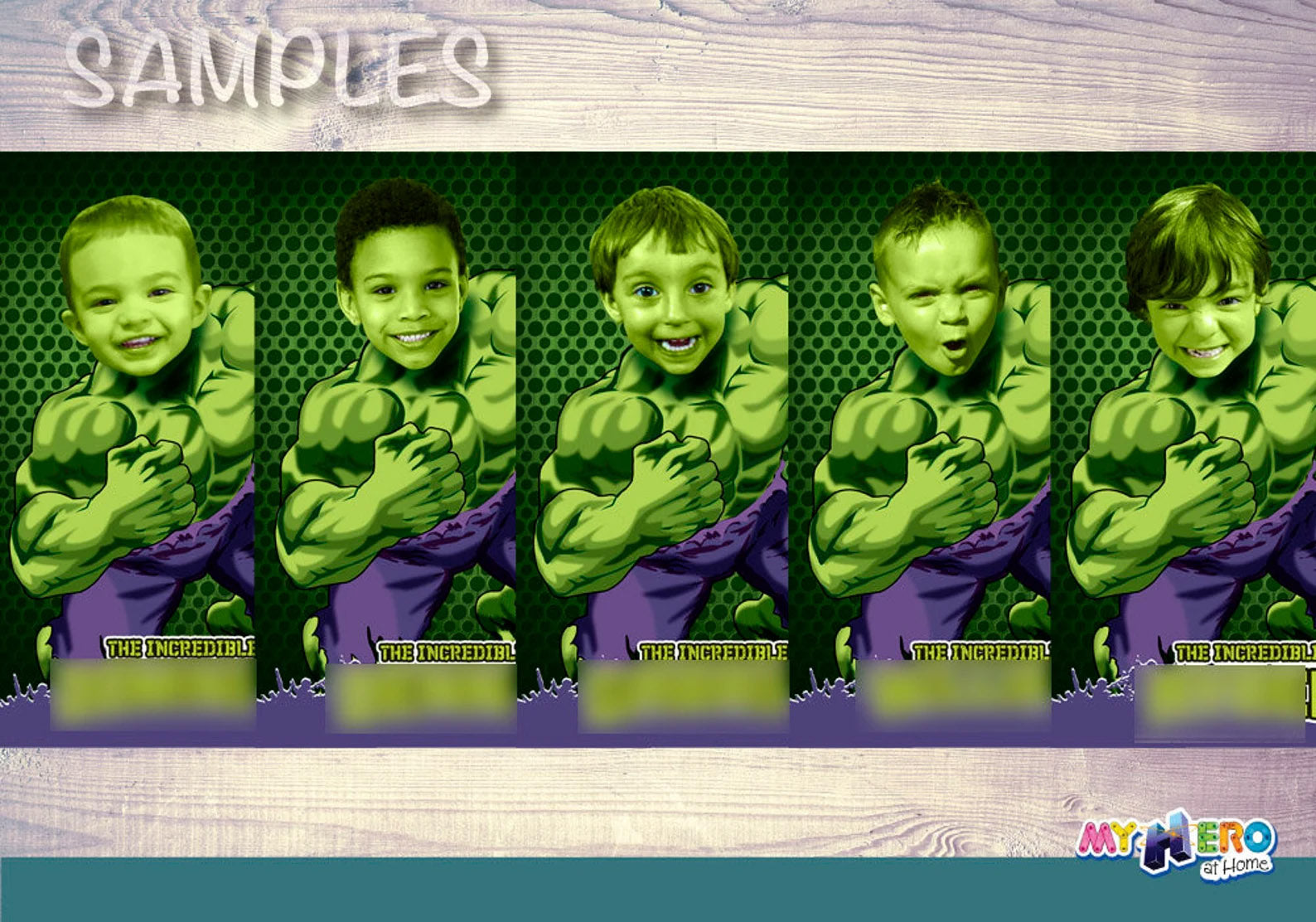 Personalized Hulk Cake topper featuring your child as the Incredible Hulk (Print, cut, assemble). 089CT