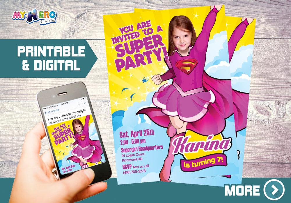 Turn your girl into an amazing Pink Supergirl for her unique Supergirl Birthday Invitation, Supergirl Photo Invitation, Super hero Girls party, Super Hero Girls Invitation, Pink Supergirl Theme Party, Pink Supergirl Invitation, Pink Supergirl Digital.