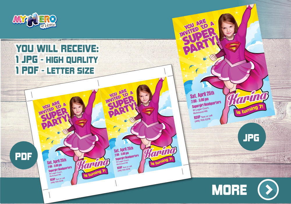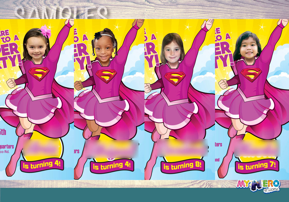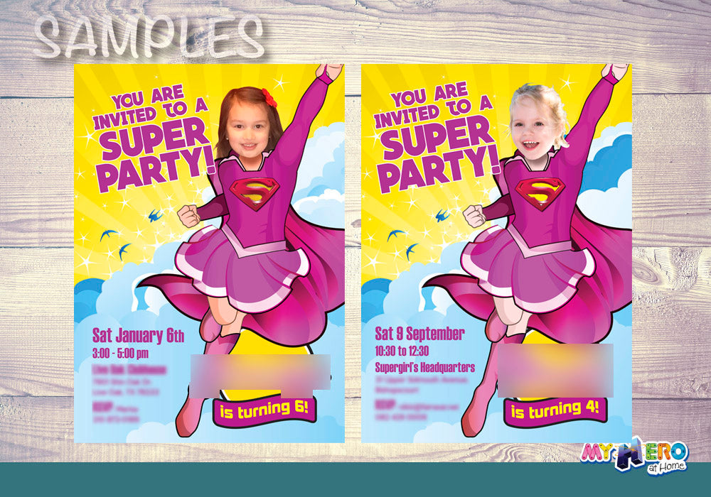 Pink Supergirl Birthday party invite with your girl as the star, Supergirl pink theme party. 111