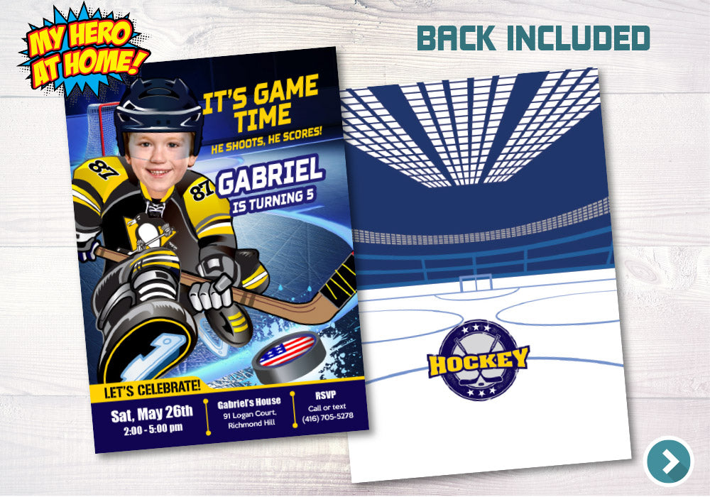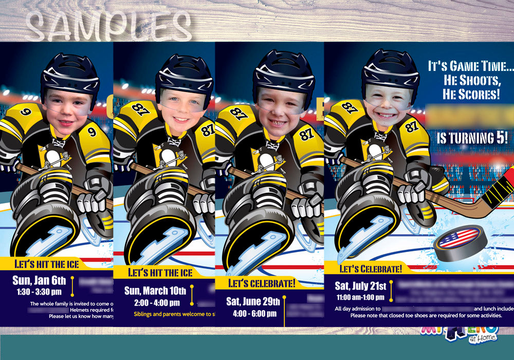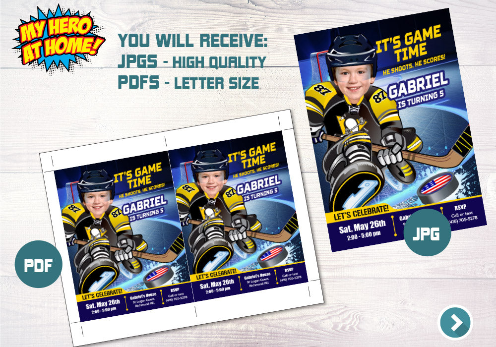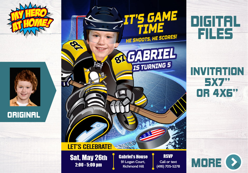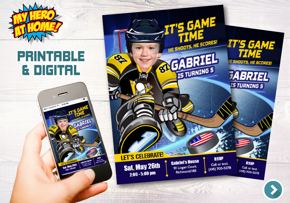 Pittsburgh Penguins Birthday party Invitation with your kid as his favorite player, Penguins Mites birthday. 320C