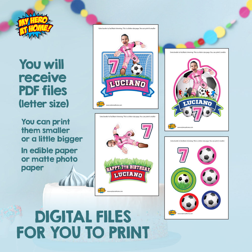 Custom Futbol Cake topper with your kid as the MVP, Cake topper Futbol Miami, Decoracion Torta Futbol Messi Miami, Soccer printable Cake topper Miami, Personalized Miami Cake topper soccer themed, Printable Soccer cake topper decor, Soccer easy cake ideas, Last minute soccer diy cake, Ideas torta fútbol Miami para imprimir.