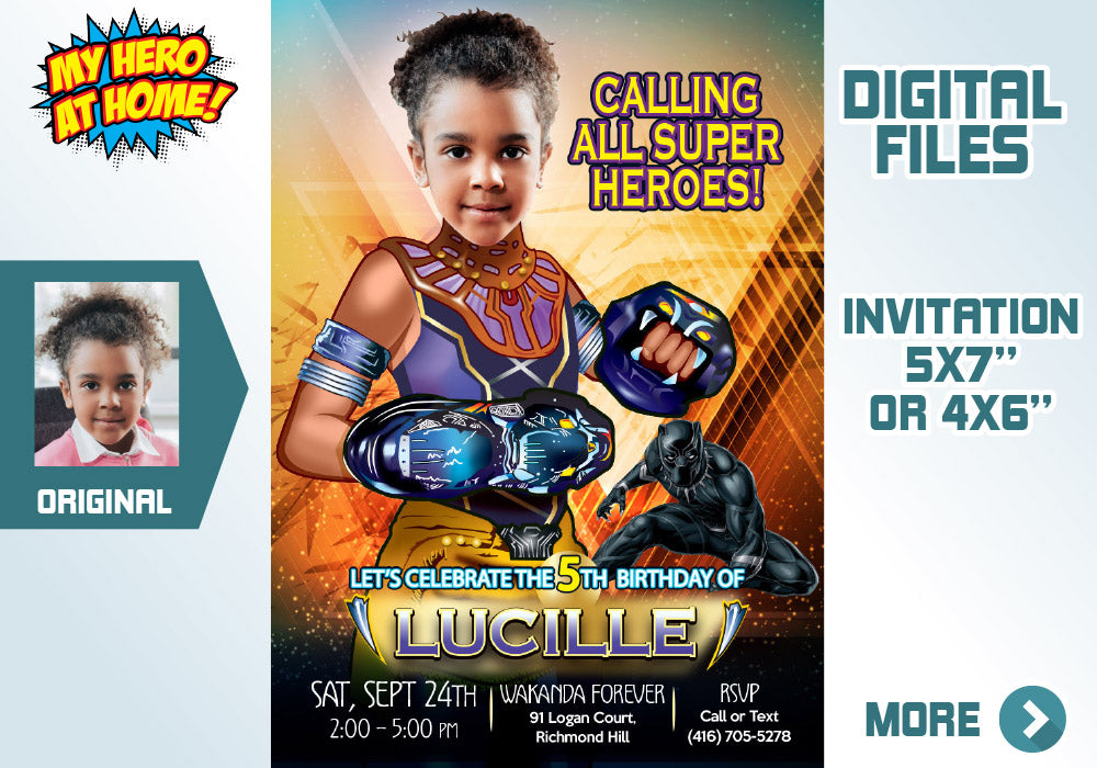 Shuri photo Invitation, Shuri Birthday Party invitation with your girl as the star. 177