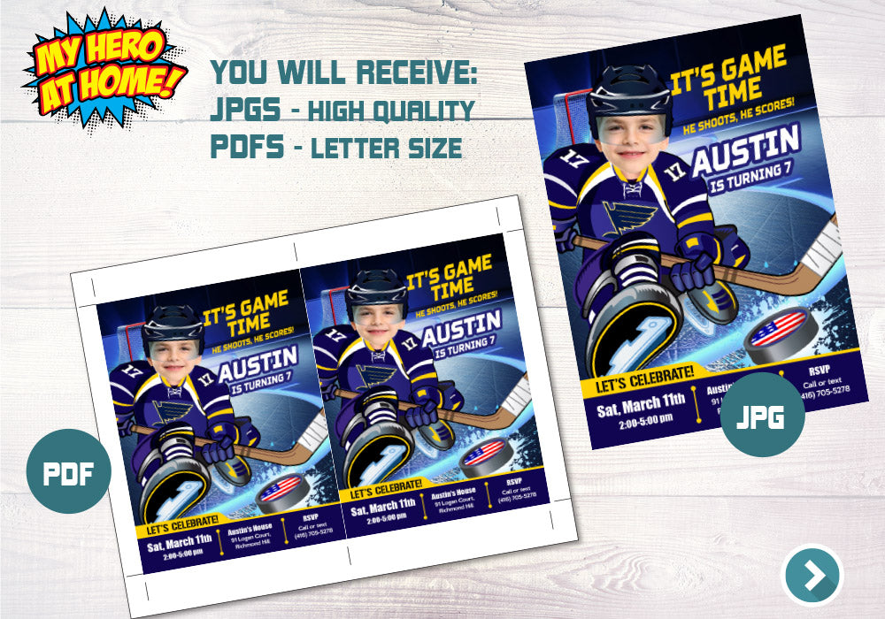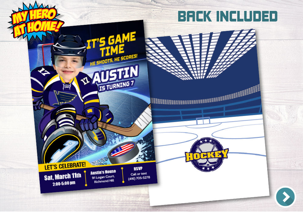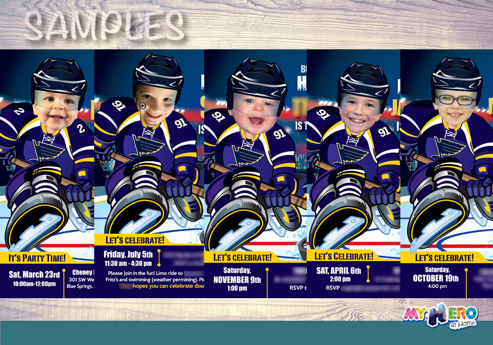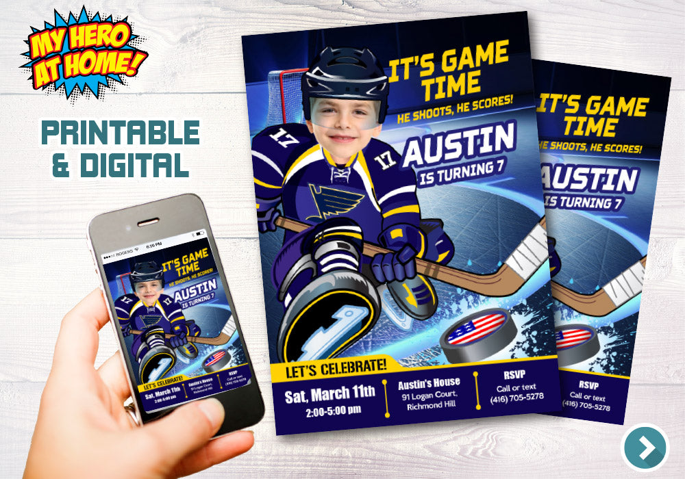 St Louis Blues Birthday party Invitation with photo, St Louis Blues Mites party photo template. 307C