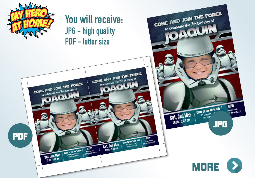 Stormtroopers Photo Invitation, Stormtroopers birthday invite with photo of birthday boy. 035