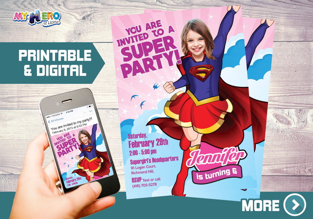 Supergirl Party Invitation with your photo, Supergirl photo template, Super hero Girls Invite. 110