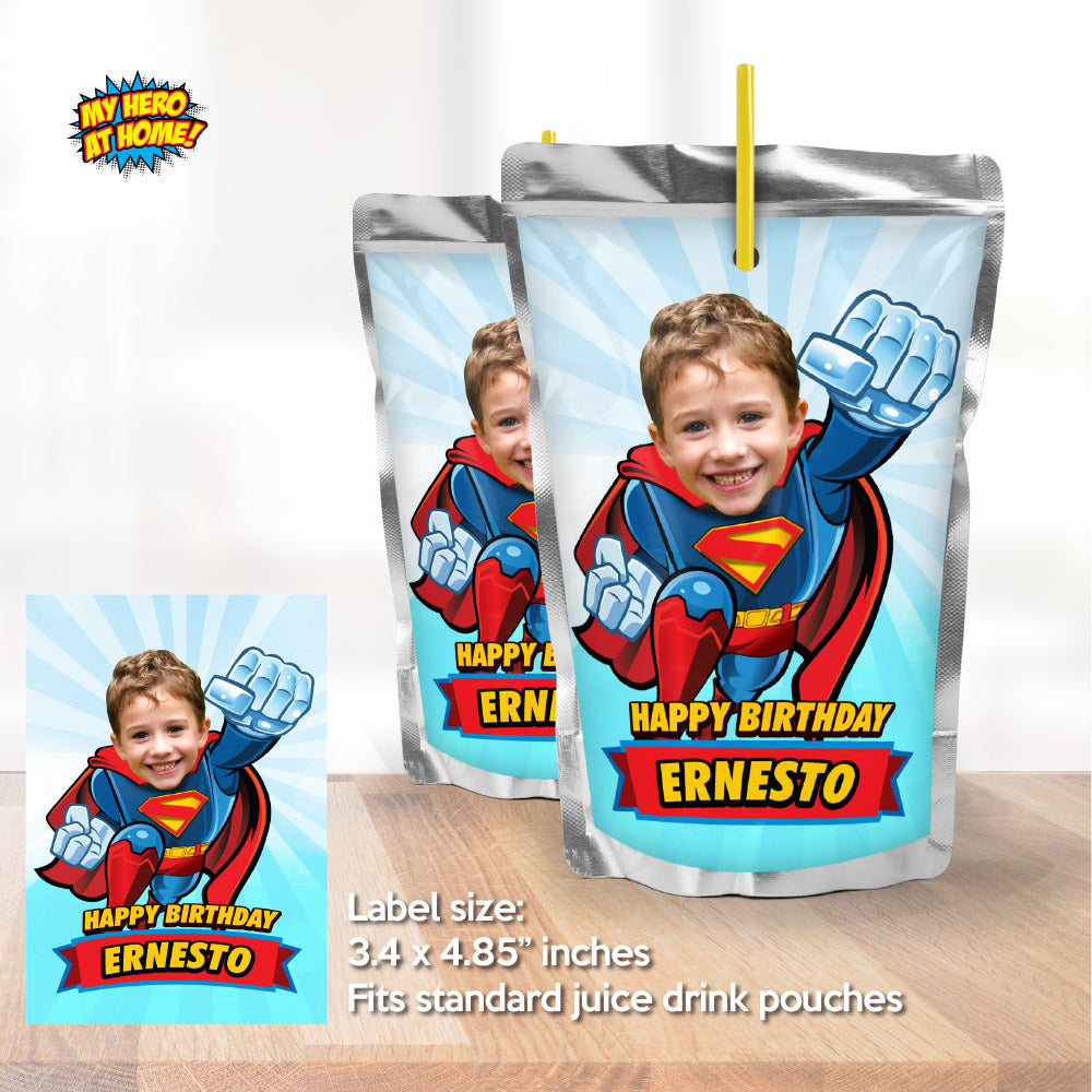 Superman labels for Capri sun, Superman drinks party labels, Superboy water wrappers, Super kid water labels. 2343WJ