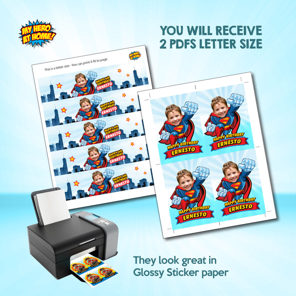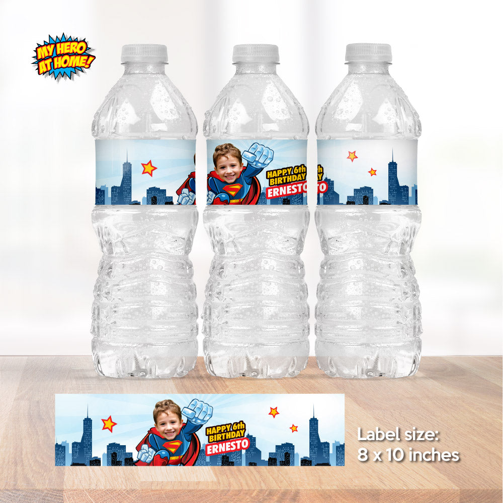 Customized Superman beverages labels, Superman bottle of Water wrappers with photo, Juice drinks labels of Superman, Superman capri sun wrappers, Superman themed party, Superman party drinks.