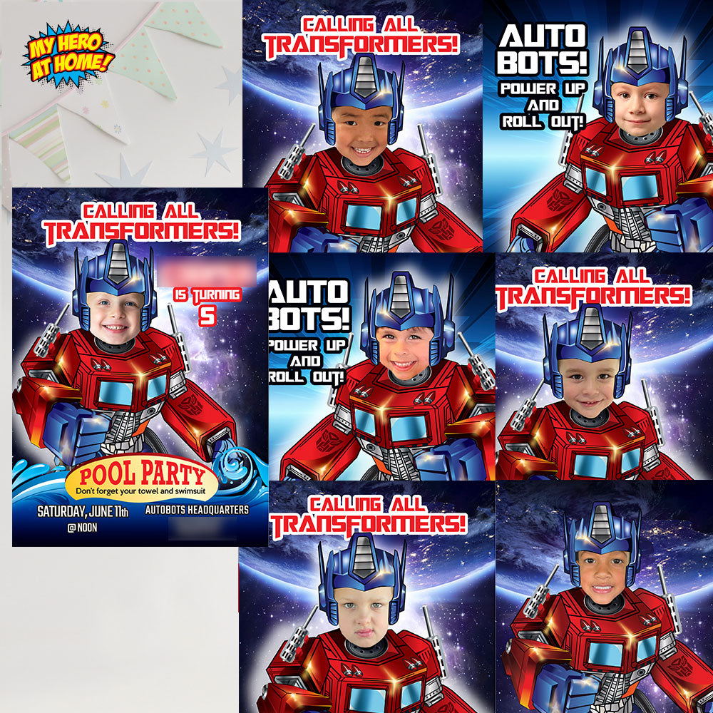 Transformers Halloween birthday party template, Optimus Prime Halloween invite, Autobots invitation for Halloween party. 2087