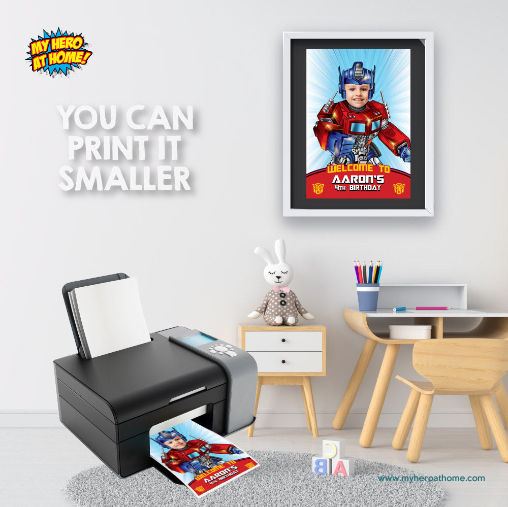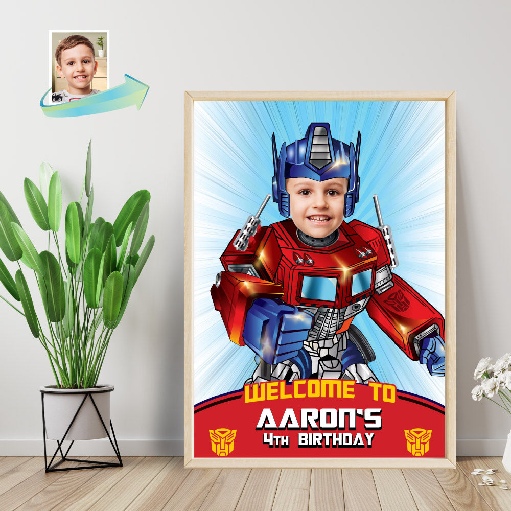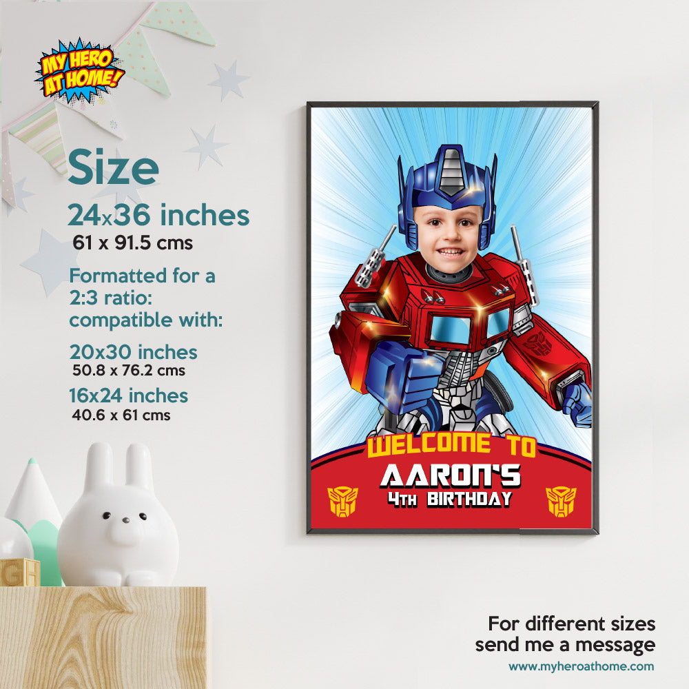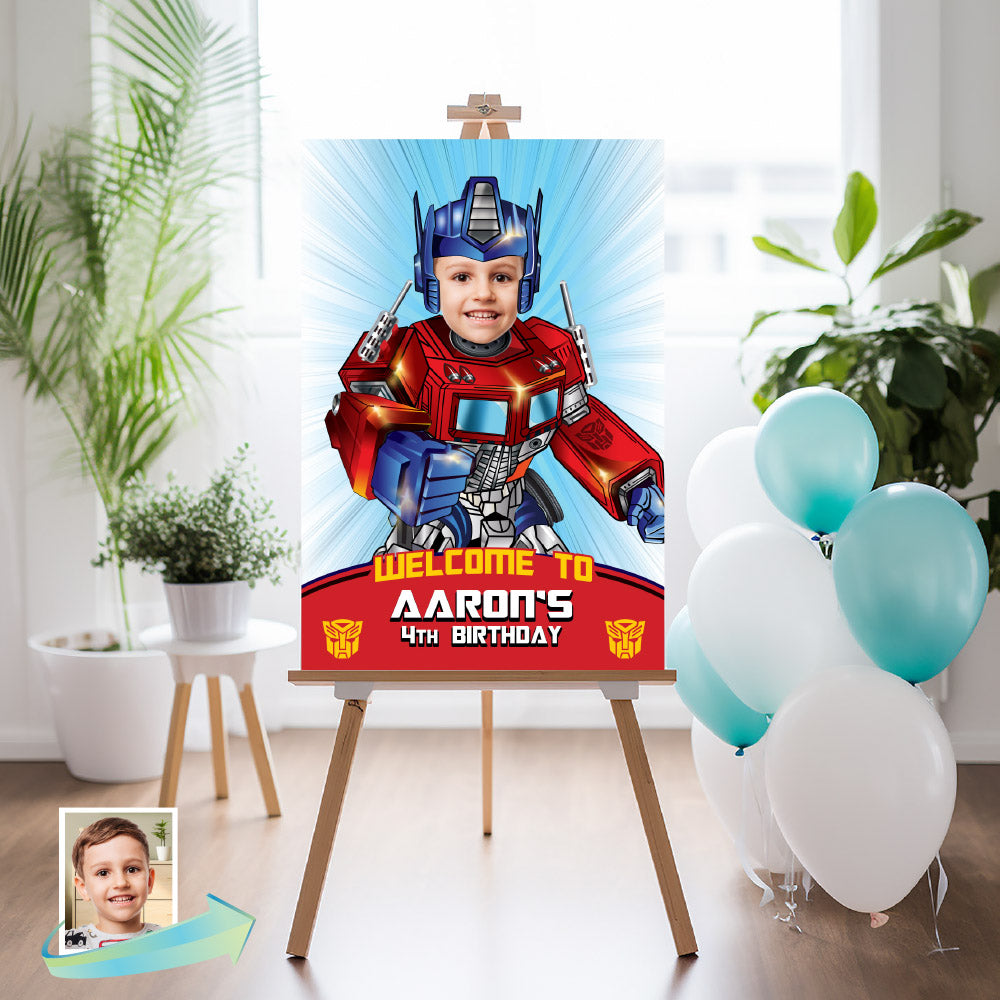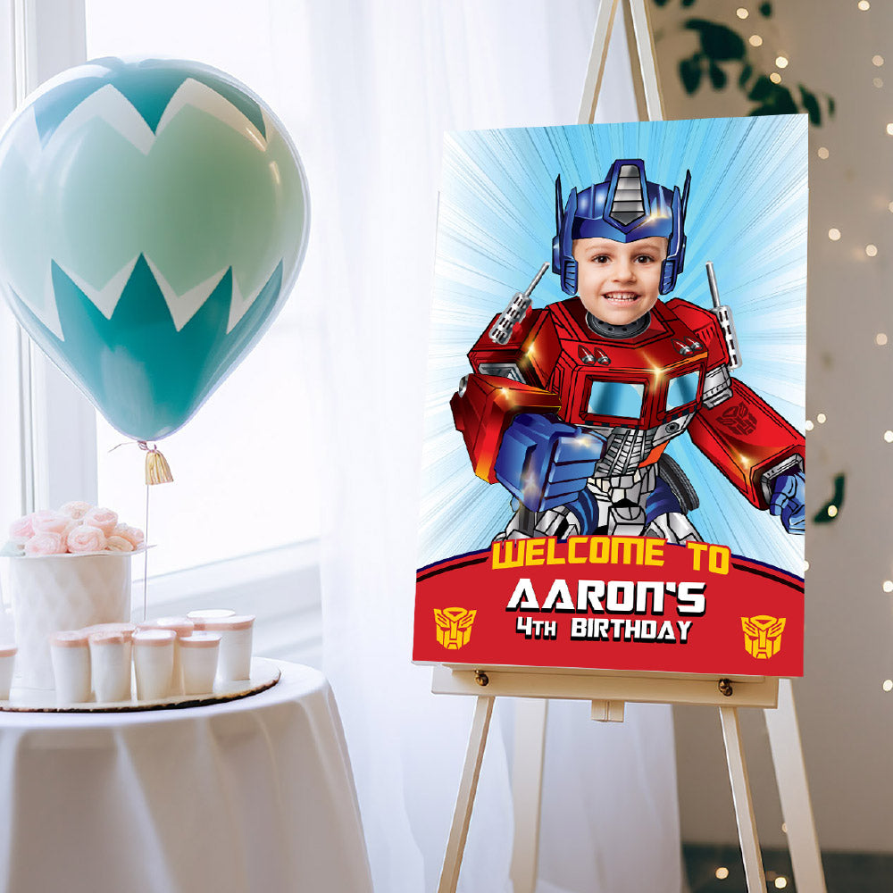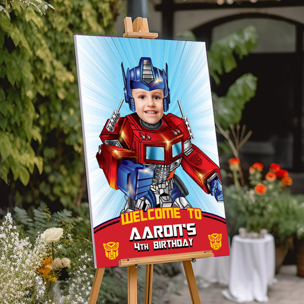Transformers Welcome sign with kid as Optimus Prime, Autobots welcome party, Optimus Prime welcome Sign. 2025WS